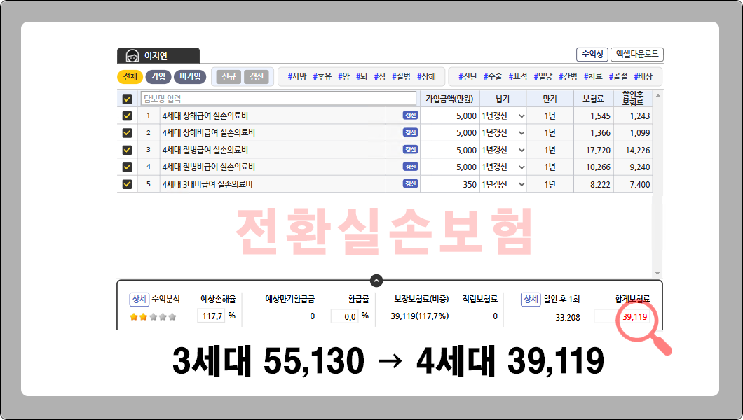 ▶ 55,130 「 3세대 실손 」▶ 39,119 「 4세대 실손 」