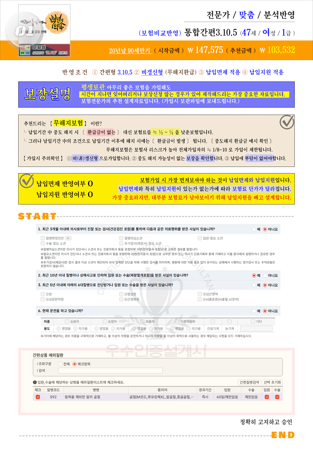 실제 가입시 분석안내를 드리고 3개이상의 보험을 비교안내 하도록 되어 있습니다.