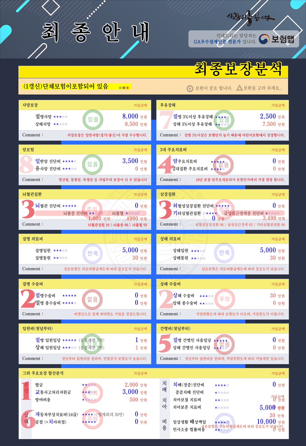 작성이 없다면, 중요안내는 모두「 최종안내 」보장분석에 작성되었습니다.