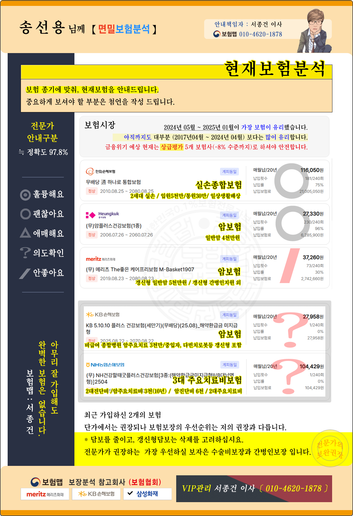 【 VIP 관리자 】 보험분석後추천보험〔 2025년 08월 28일 〕