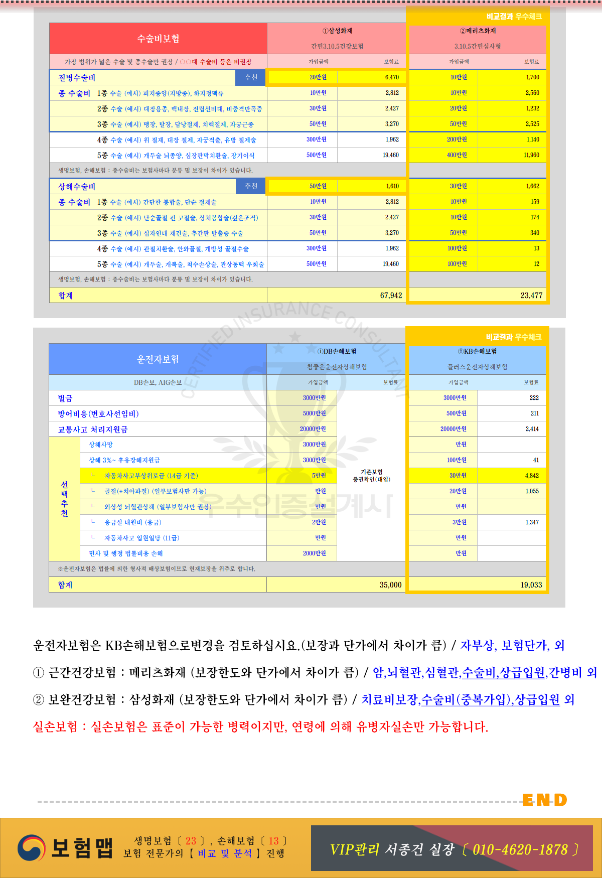 「 보험비교 」추가안내 : 보험비교가 반영되어 추천보험이 설계되었습니다.